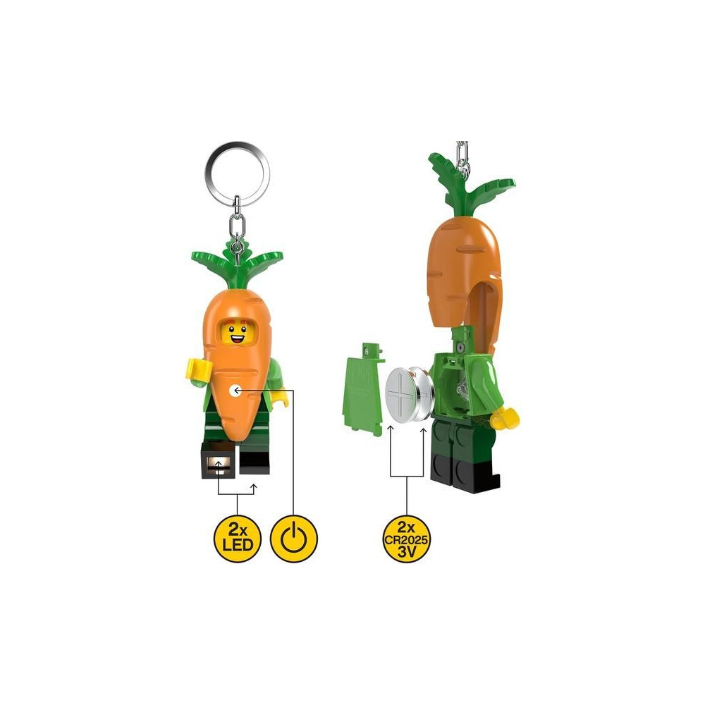 Sárgarépa figura LED-es világító medálként hátizsákra vagy kulcsokra akasztható. A mellkason gombbal és a lábakon LED-ekkel ellátott gyűjthető LEGO figurák nem hiányozhatnak a LEGO figura gyűjteményedből! A figura magassága 7,5 cm. Az elem a csomagban található. Ajánlott életkor: 6+.