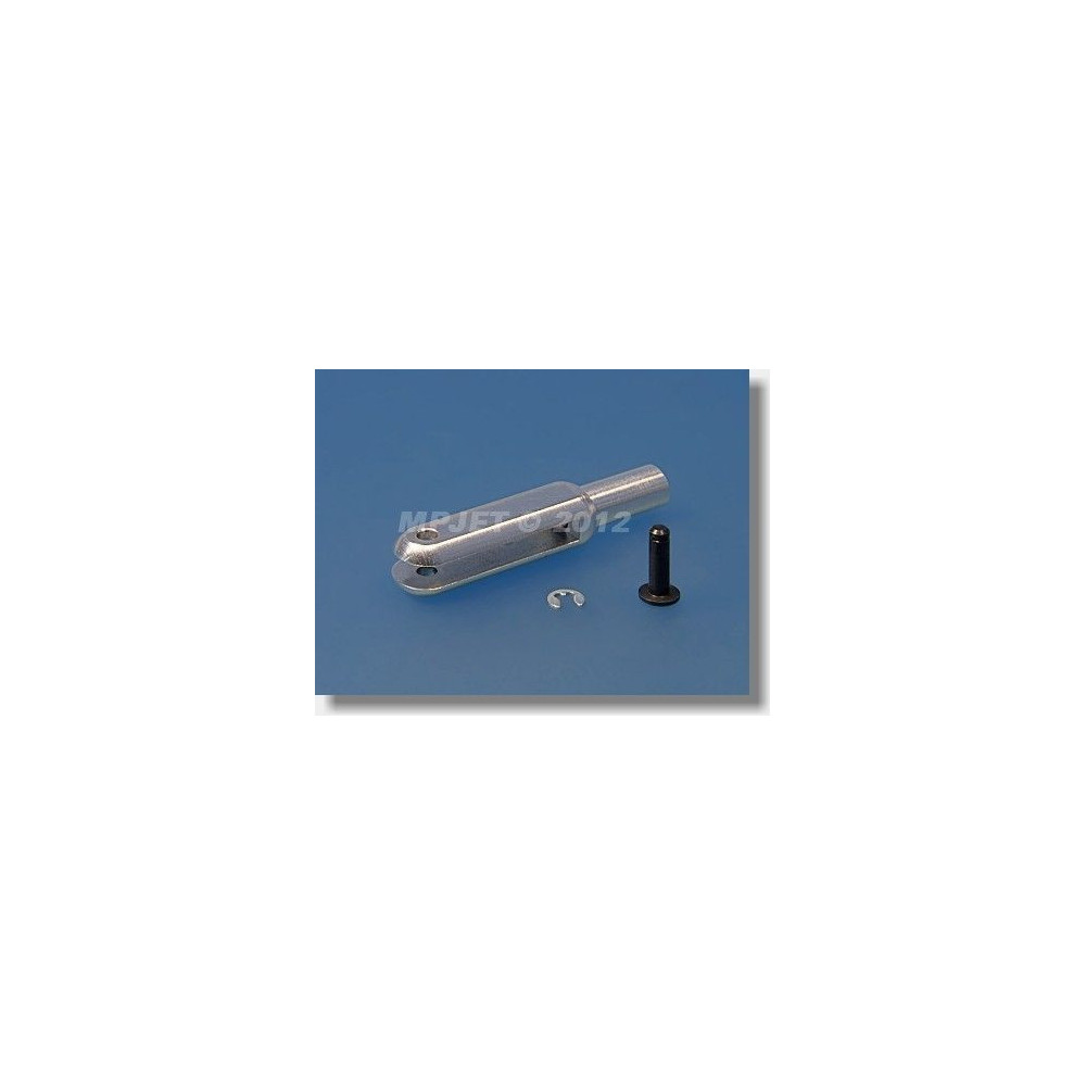 Teljesen fém villa, teljes hossza 23 mm, 1,6 mm átmérőjű csap és belső jobb vagy bal M2 menet a rúdra való csavarozáshoz, a vezérlőkar hornyának szélessége 2 mm. A test anyaga duralumínium, az esztergált, feketített acélcsapot 1,2 mm-es bilincsgyűrű biztosítja a kihullás ellen. Csere csapok bilincsgyűrűvel együtt - MPJ 2190 SB, csak csere bilincsgyűrű - MPJ 0754. A csomag tartalma: 2 db.