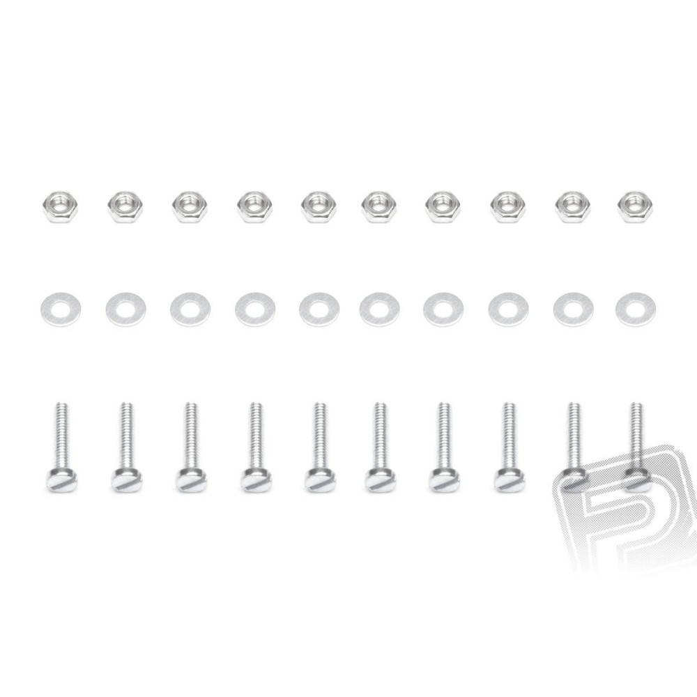 Tartozékok a gömbcsuklókhoz. A készlet a következőket tartalmazza: M2x10-es csavar, anya és alátét. 10 darabos csomagVíce informací