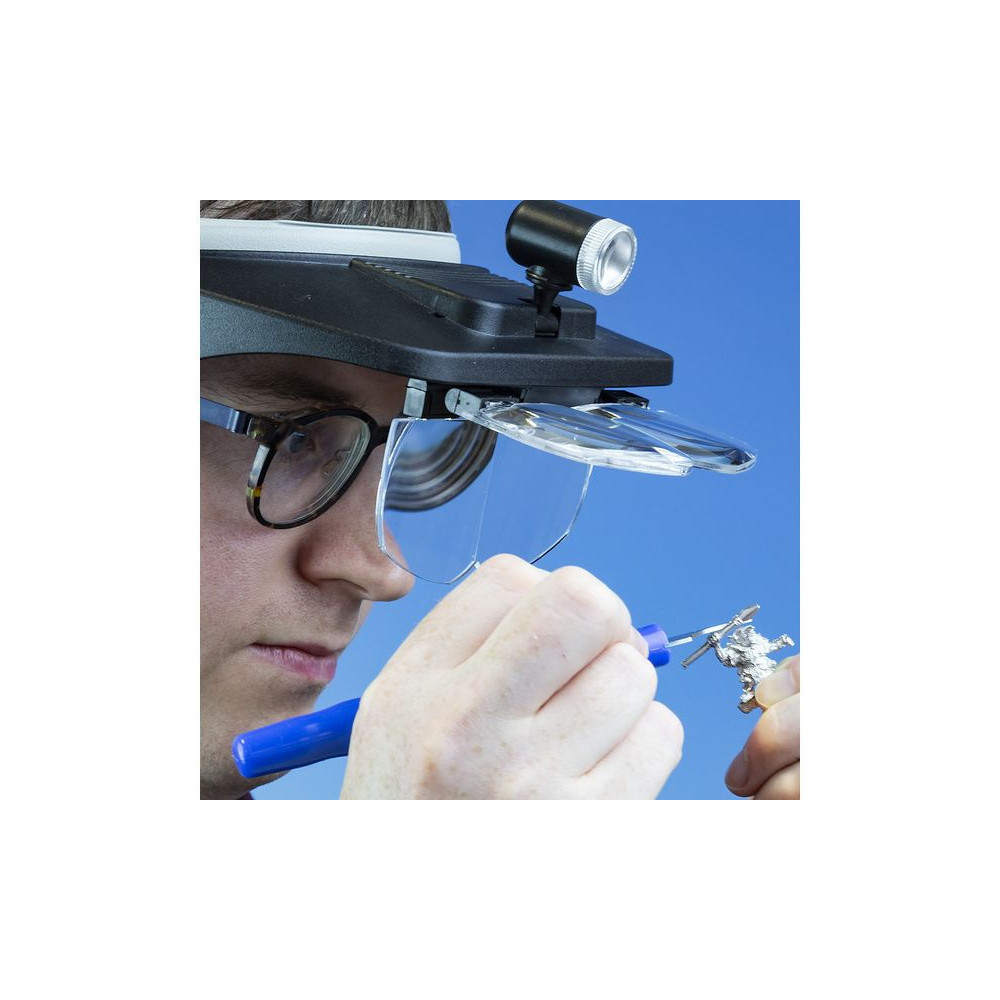 A nagyítóval és LED-világítással ellátott Lightcraft fejpánt segít a részletes munkában, amikor szabadon kell tartania a kezét. A rugalmas fejpánt bármilyen fejmérethez illeszkedik, és 4 méretű cserélhető lencsét tartalmaz, 75 mm-től 500 mm-ig terjedő fókusztávolsággal. Nagyítás 1,2x és 3,5x között.