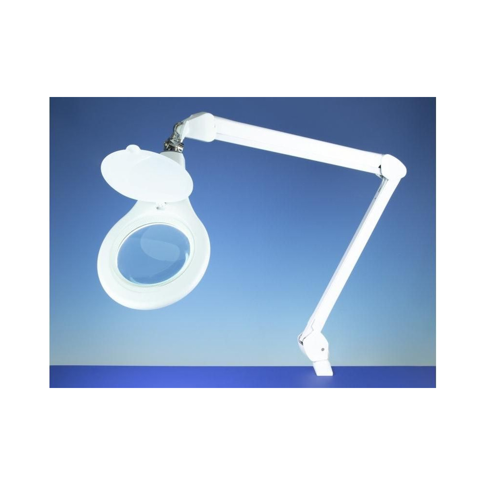 Energiatakarékos Lightcraft LED asztali lámpa kerek nappali nagyítóval, kiváló minőségű nagyító lencsékkel. Rugalmas csuklós kar nagy hatótávolsággal a pontos pozícionáláshoz csúszás nélkül. Kiváló minőségű 125 mm-es lencse, 3 dioptriával (1,75x nagyítás). 56 db SMD LED 6000 - 7000K színhőmérsékletű, 90 CRI-vel, fogyasztása mindössze 11W, hálózati tápegységgel.