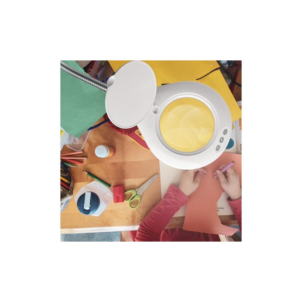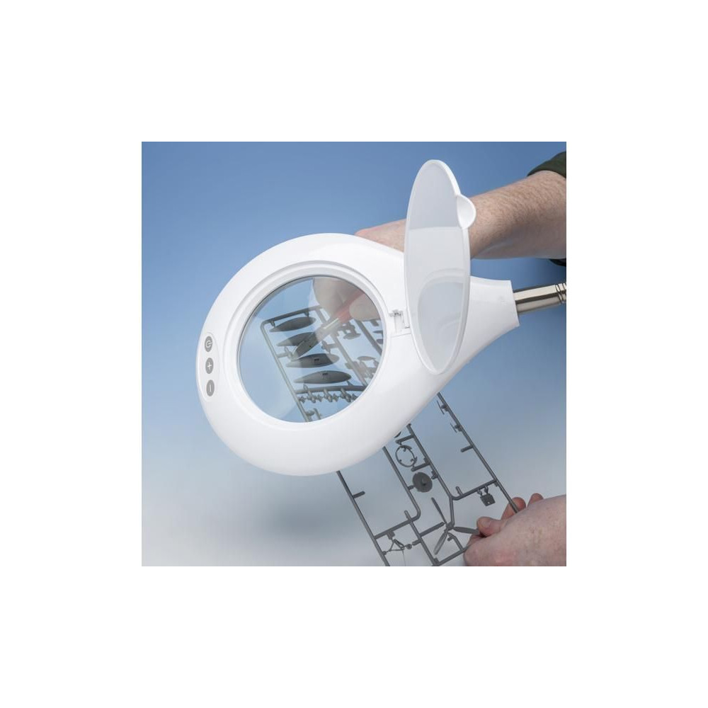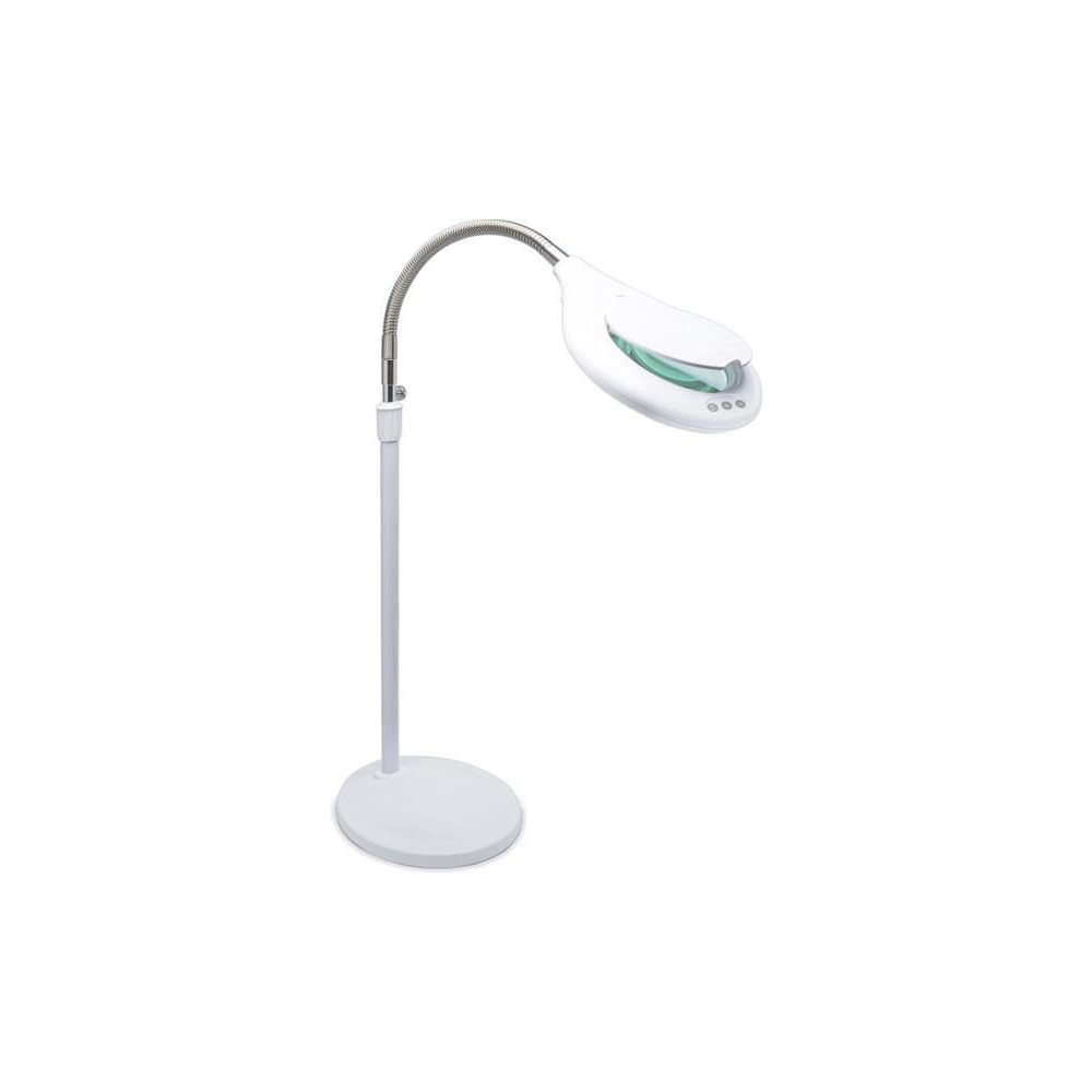 Energiahatékony Lightcraft LED-es állólámpa masszív talppal, kiváló minőségű nagyító lencsével és megvilágítással. Összesen 56 LED 6000 - 7000 K színhőmérsékletű fényt produkál, a lencse átmérője 125 mm, 1,75x nagyítás, munkamagasság 130 cm. Rugalmasan állítható nyak. Ideális bútorok vagy nagyméretű antik tárgyak restaurátorai számára.