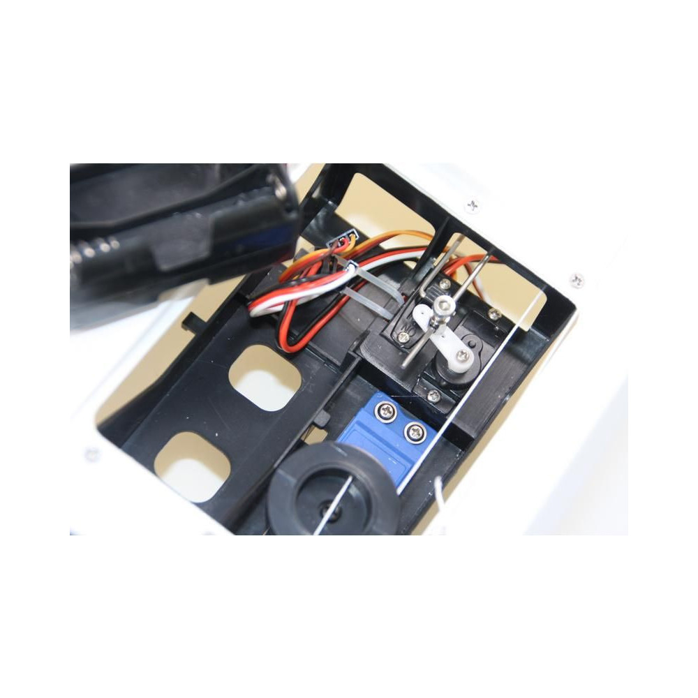 A hajótestbe egy 9 kg-os szervócsörlő és digitális szervóvezérlés van beépítve. A kormányszervó rúd és a csörlő csigája kábelekkel fel van szerelve és készen áll a végső összeszerelésre.