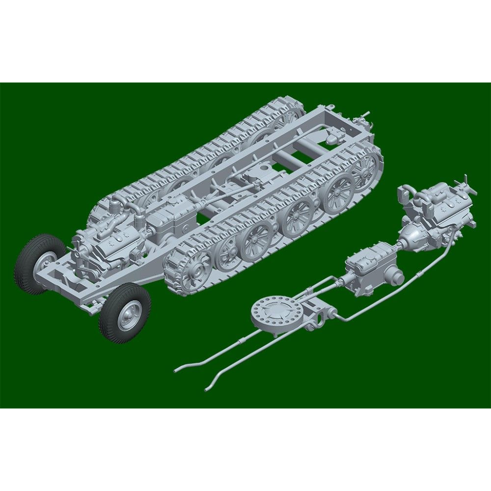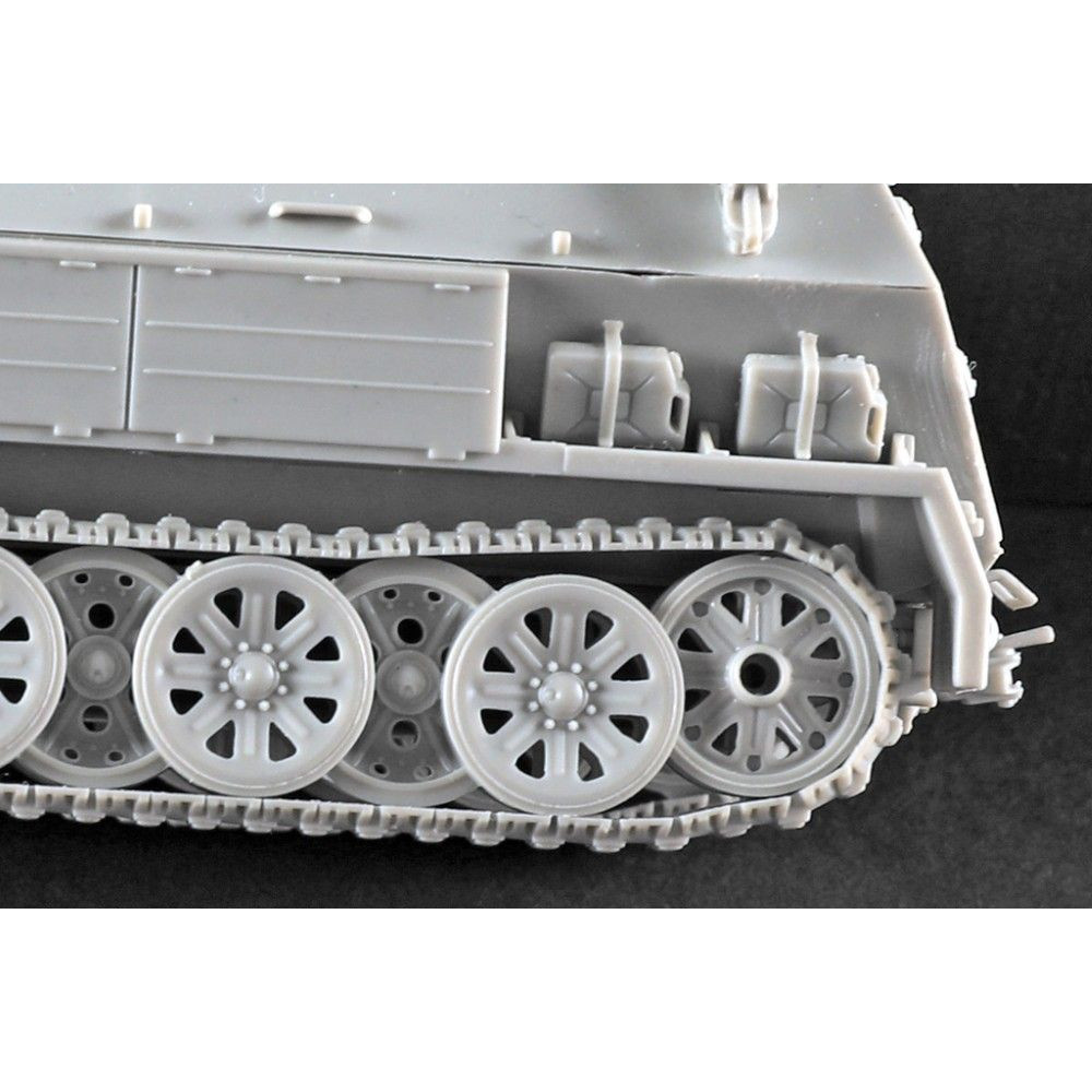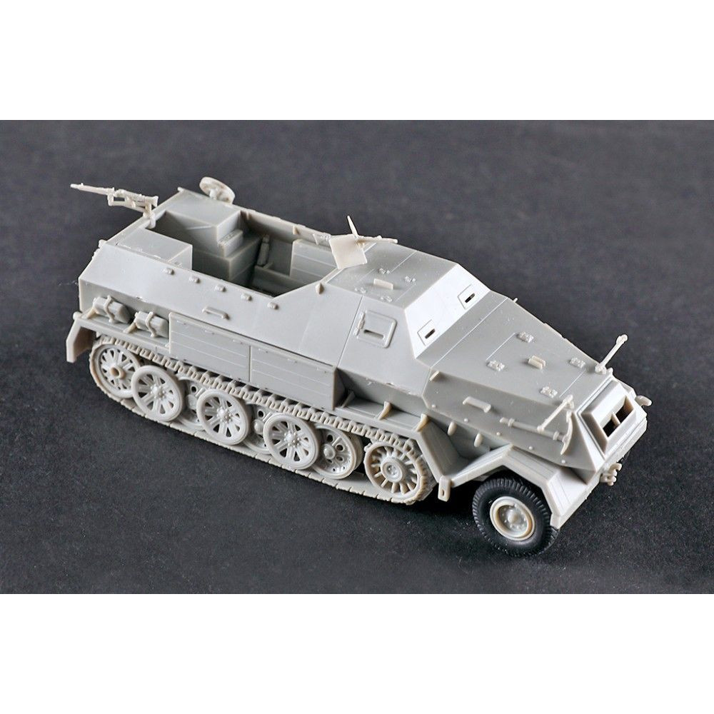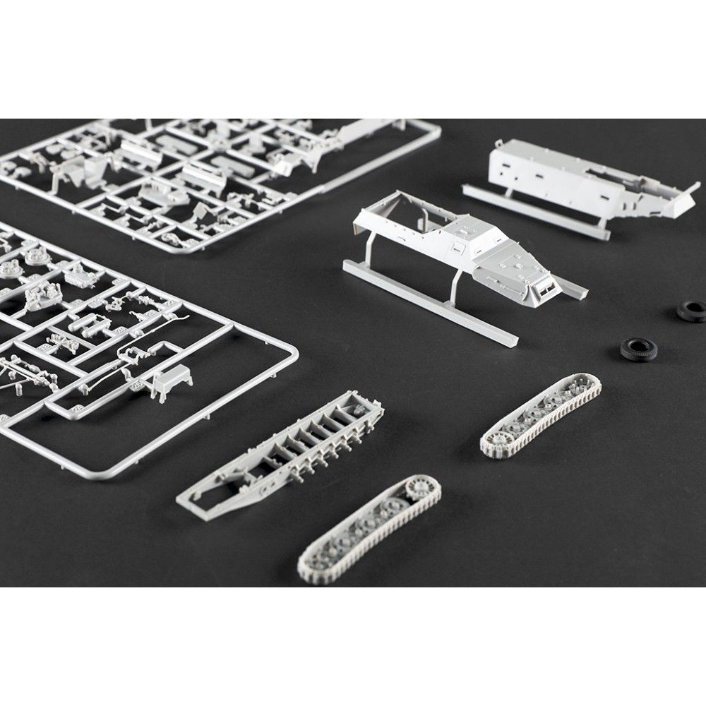 A német 12 tonnás féllánctalpas Sd.Kfz. 8 páncélozott (Gepanzerte) műanyag készlete 1:72 méretarányban. A Trumpeter modellje több mint 60 alkatrészből áll és 108 mm hosszú. A készlet gumiabroncsokat is tartalmaz a részletesebb kidolgozás érdekében. Ideális választás a második világháborús felszerelések gyűjtőinek.
