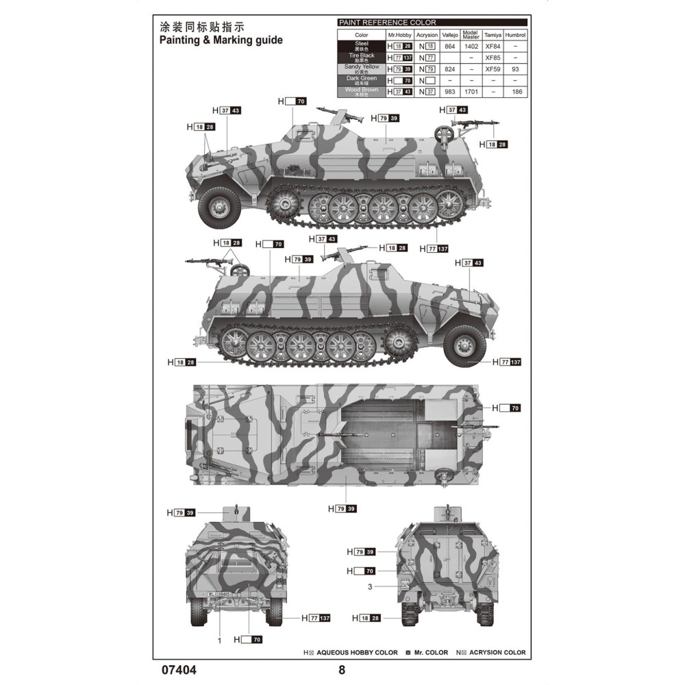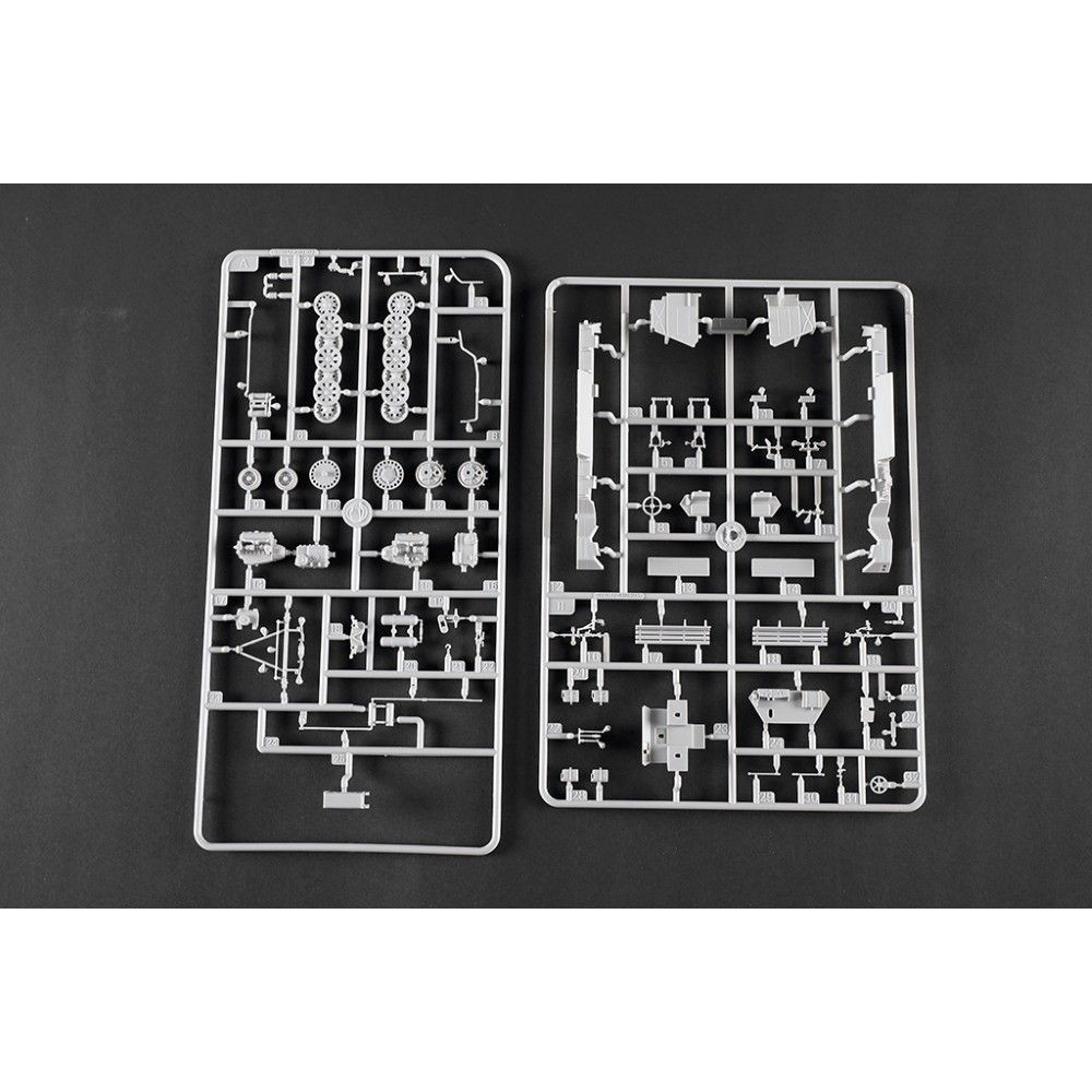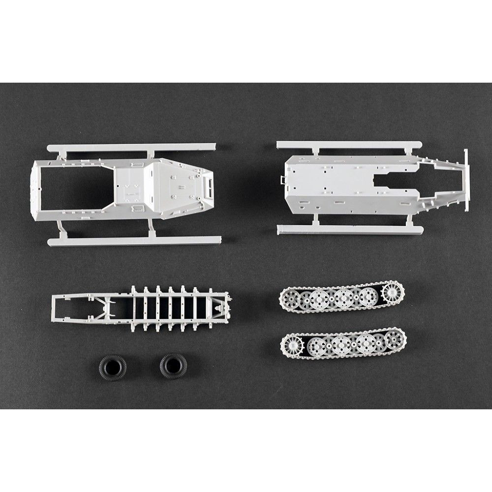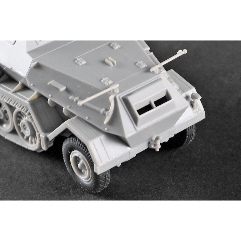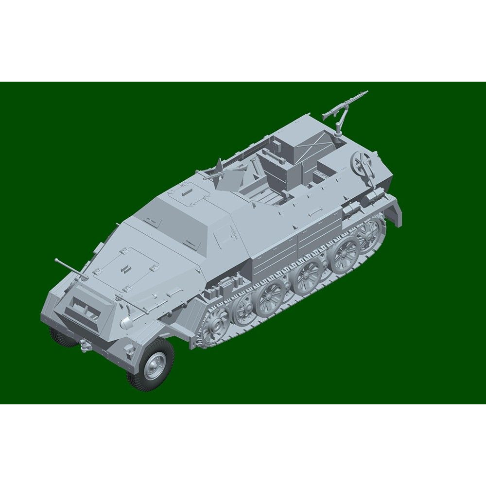 A német 12 tonnás féllánctalpas Sd.Kfz. 8 páncélozott (Gepanzerte) műanyag készlete 1:72 méretarányban. A Trumpeter modellje több mint 60 alkatrészből áll és 108 mm hosszú. A készlet gumiabroncsokat is tartalmaz a részletesebb kidolgozás érdekében. Ideális választás a második világháborús felszerelések gyűjtőinek.