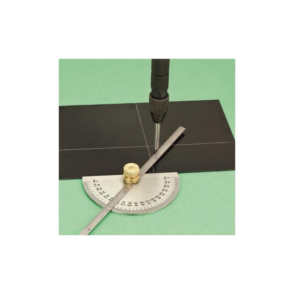 A Modelcraft mélységmérő szögmérővel 190mm hosszú rozsdamentes acél vonalzóval rendelkezik, a szögmérő magassága 47mm, súlya 67g. Tartalmaz egy mélységmérőt, amely metrikus és hüvelykes skálán is jelölve van. Rugós nyomóanyával a könnyű mélységméréshez.