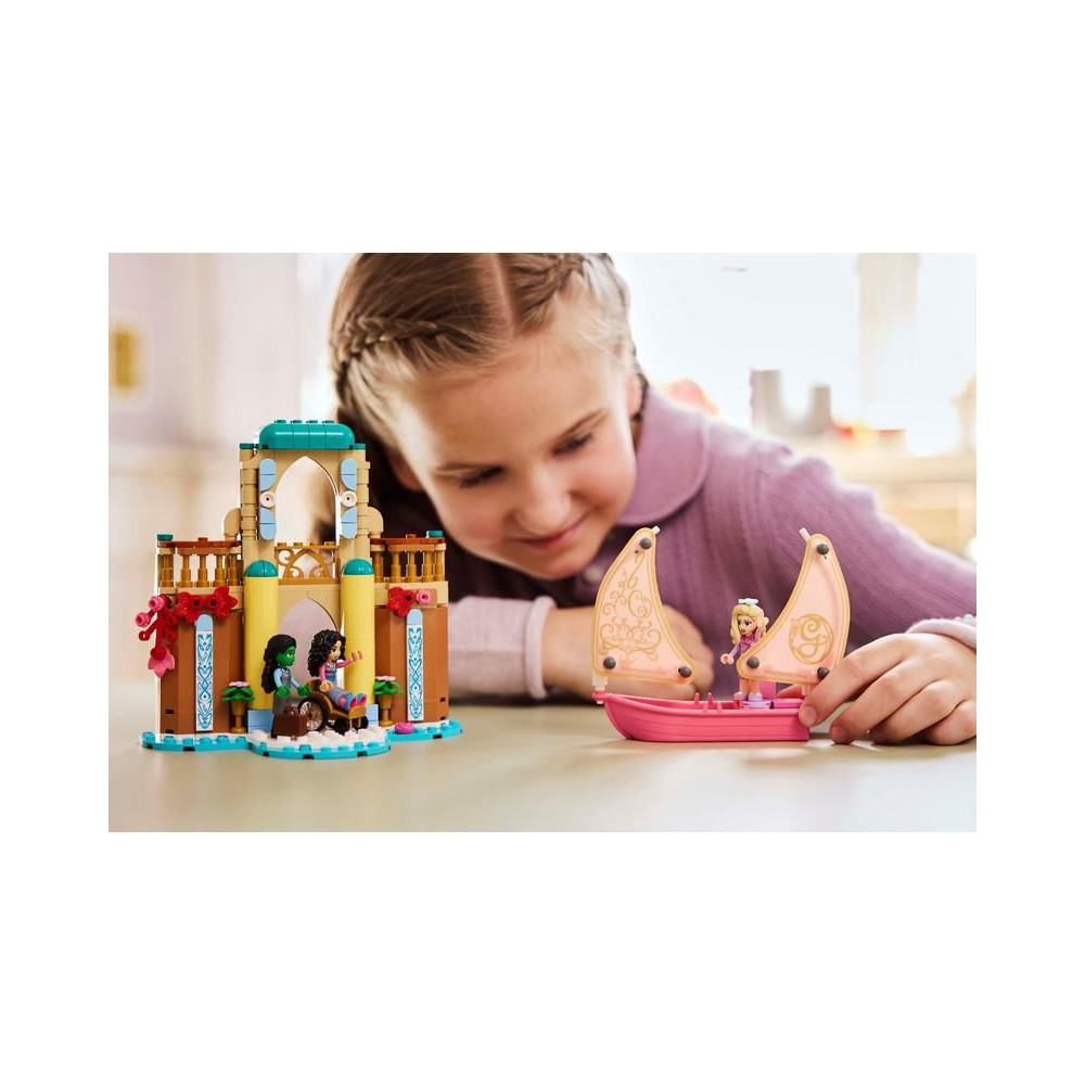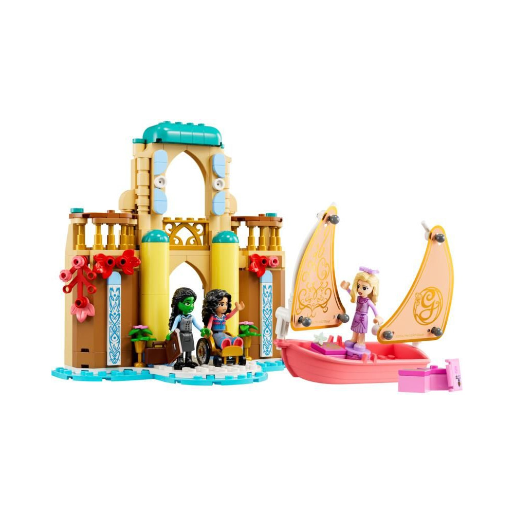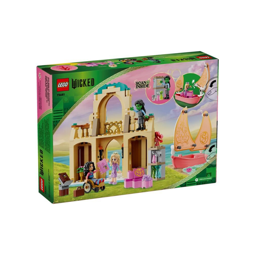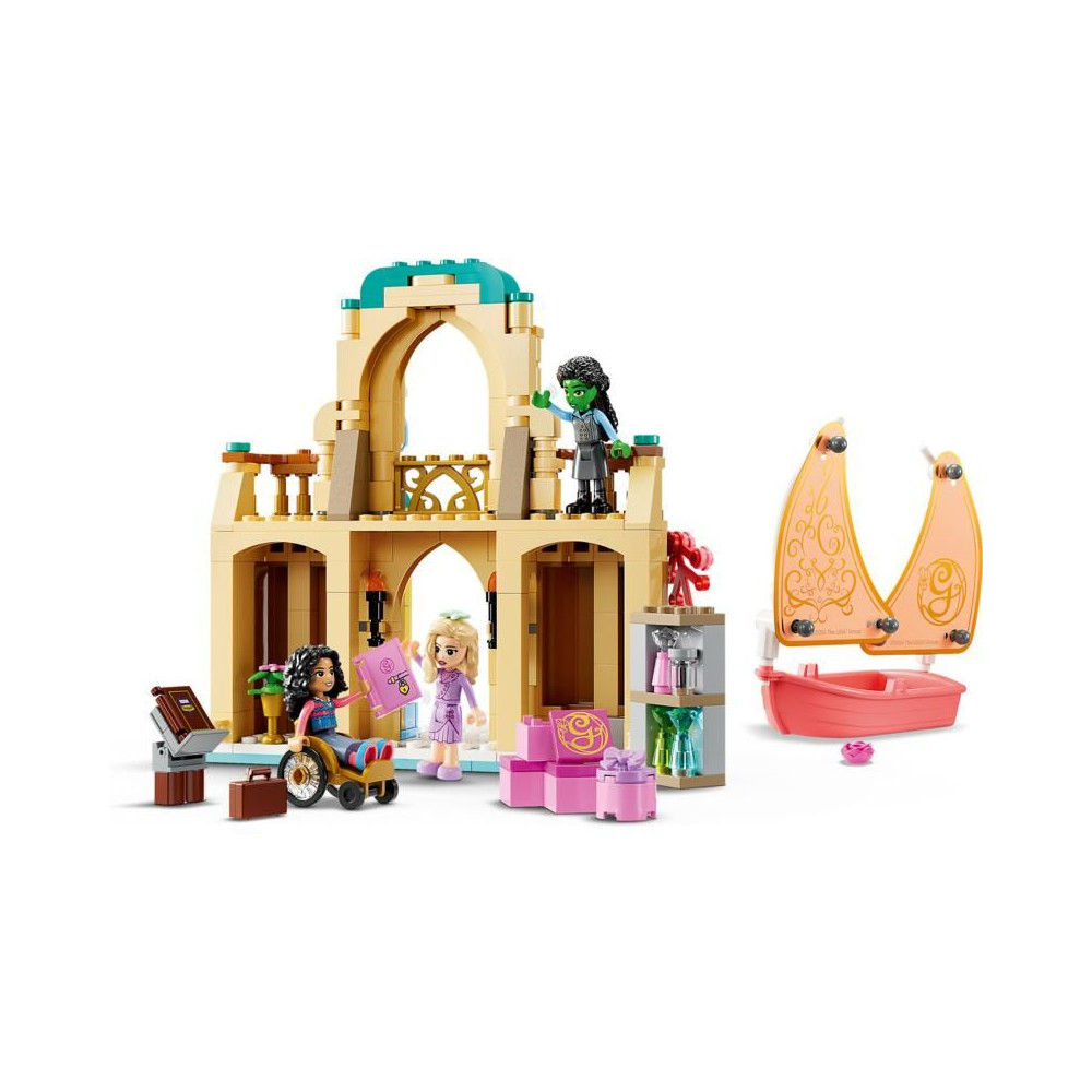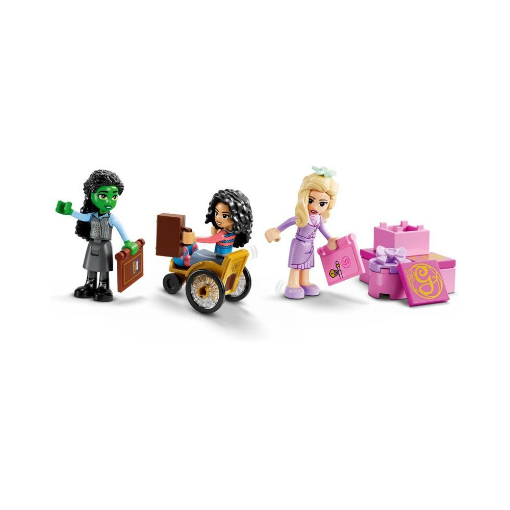 A rajongók kalandozni fognak a LEGO® Wicked világában. Glinda a Shiz Egyetemre érkezik a vitorlásán, melynek vitorlája összecsukható. Gyönyörű rózsaszín árnyalattal büszkélkedhet, akárcsak a filmben. A készlet remek ajándék, a Wicked című film ihlette, és a gyerekeket emlékeztetni fogja a minitáncosok, Glinda, Elphaba és Nessarose barátságának történetére.