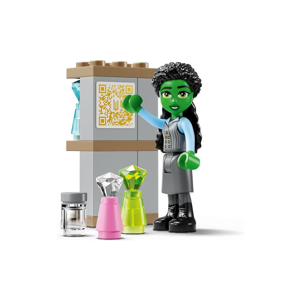 - Játékélmény - A rajongók saját ízlésükre szabhatják az épületet dekorációs elemekkel, kiegészíthetik Glinda haját kiegészítőkkel, és egy rejtett QR-kód beolvasásával még több egyedi LEGO® Wicked tartalmat fedezhetnek fel.