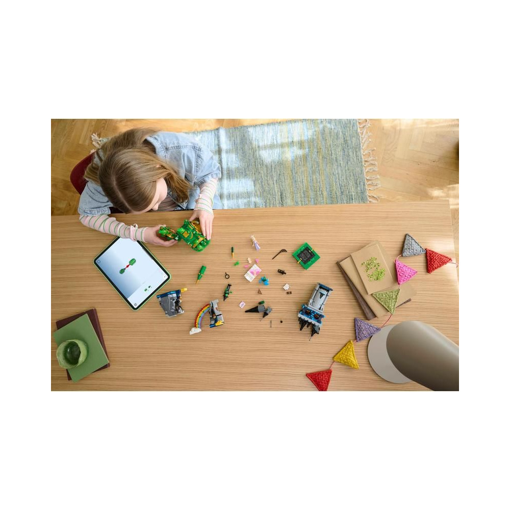 - Éld át újra a látványos jeleneteket – Pihenj Glindával békében Smaragdvárosban, fedezd fel a rejtett térképet, forgasd meg a forgókorongot a Kiamo Ko kastély modelljében, és segíts Elphabának eltűnni a LEGO® szivárvány mögött.