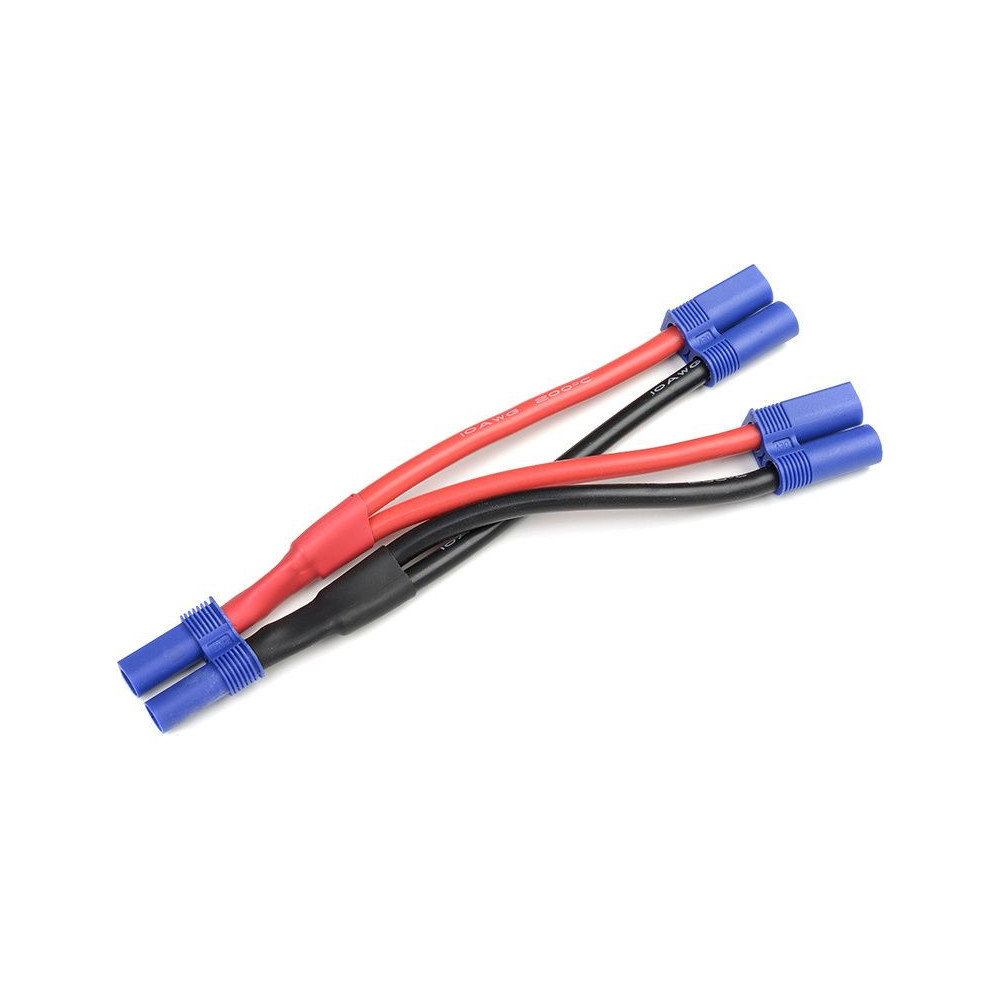 Párhuzamos Y-kábel EC5 csatlakozókkal és 14AWG kábelekkel, hossza 12 cm. Két műszercsatlakozó (az akkumulátorokhoz) és egy akkumulátorcsatlakozó (a vezérlőhöz). Csak azonos típusú, feszültségű és kapacitású akkumulátorok csatlakoztathatók egymás mellé!
