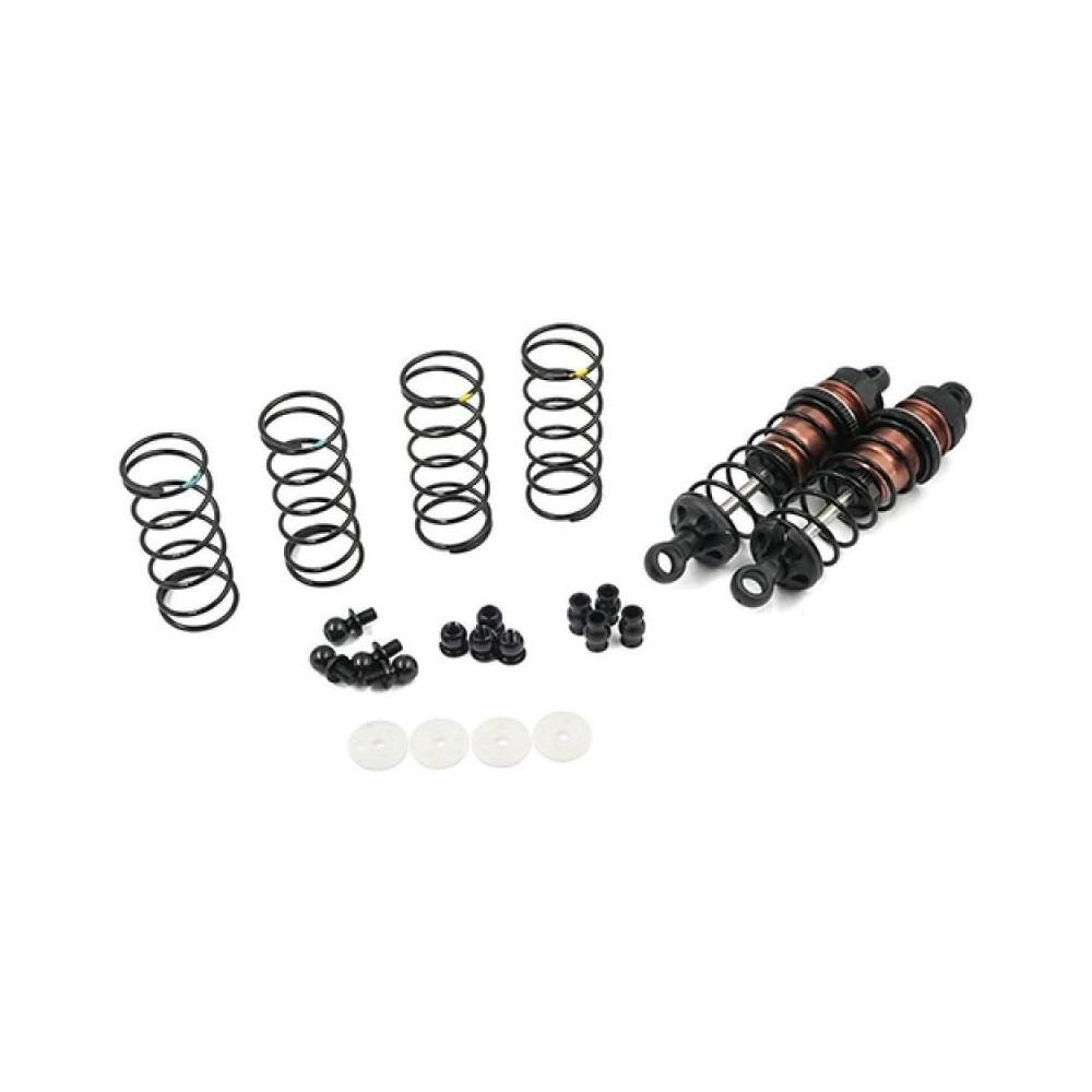 Nagy furatú, hajrá! nagy térfogatú lengéscsillapító készlet - olajjal feltöltve már indulhatsz is! Két különböző típusú gömbfejet tartalmaz, különböző típusú autókhoz. Különböző rugók tartoznak hozzá, így a felfüggesztés merevségét beállíthatod, és nem kell más rugókat keresned a lengéscsillapítók megvásárlása után. Ha komolyan gondolod a tuningot, különböző furatú dugattyúkat is tartalmaz a csomag, így beállíthatod, hogyan reagál a lengéscsillapító a lengéscsillapító olajra.