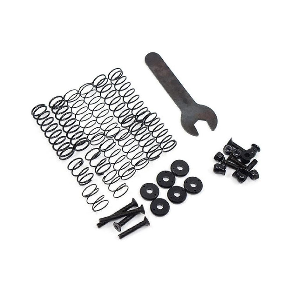 Teljes rugókészlettel és mart dugattyúkkal érkeznek, így a modelledet különféle körülményekhez igazíthatod. A csomag rugókat tartalmaz, amelyek lehetővé teszik a lengéscsillapítók lógó vagy rugós konfigurációban történő összeszerelését. A felfüggesztés beállításával olyan autót hozhatunk létre, amely nagy rugalmassággal és nagyobb rugóúttal rendelkezik. A megereszkedés beállításával az autó alacsonyabban ül, és a rugó a dugattyú alatt kevésbé hajlamos a felborulásra, de kevesebbet fog hajolni. Háromszoros tömítéssel és O-gyűrűkkel rendelkezik a lengéscsillapítók olajszivárgásának megakadályozása érdekében!