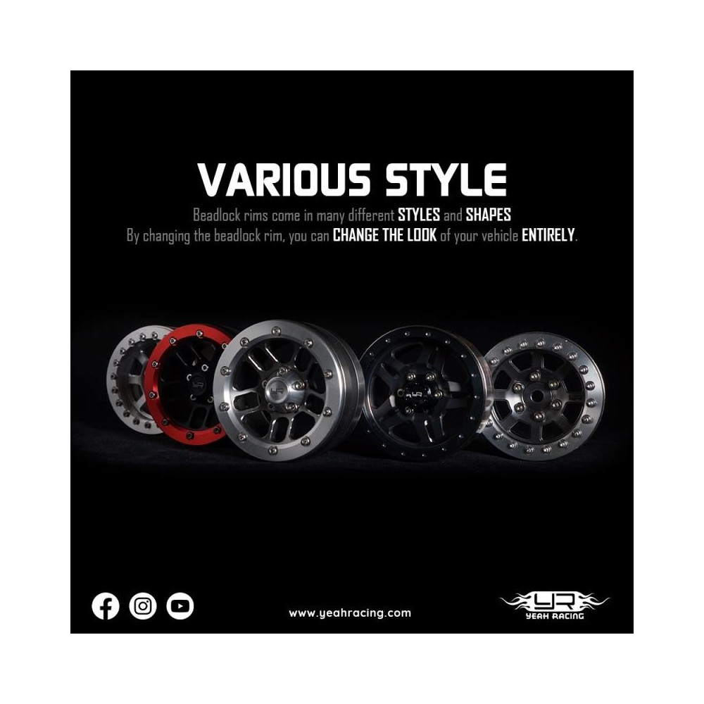 1,9 hüvelykes Yeah Racing Heavy Duty Beadlock kerék a crawlerekhez! A CNC megmunkálásnak, a formatervezés, az anyag és a súly tökéletes kombinációjának köszönhetően a legszebb és legerősebb kerekeket kapod expedíciós járművedhez.