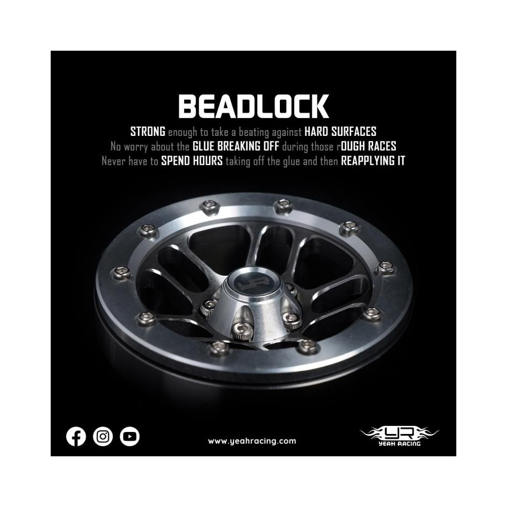 1,9 hüvelykes Yeah Racing Heavy Duty Beadlock kerék a crawlerekhez! A CNC megmunkálásnak, a formatervezés, az anyag és a súly tökéletes kombinációjának köszönhetően a legszebb és legerősebb kerekeket kapod expedíciós járművedhez.