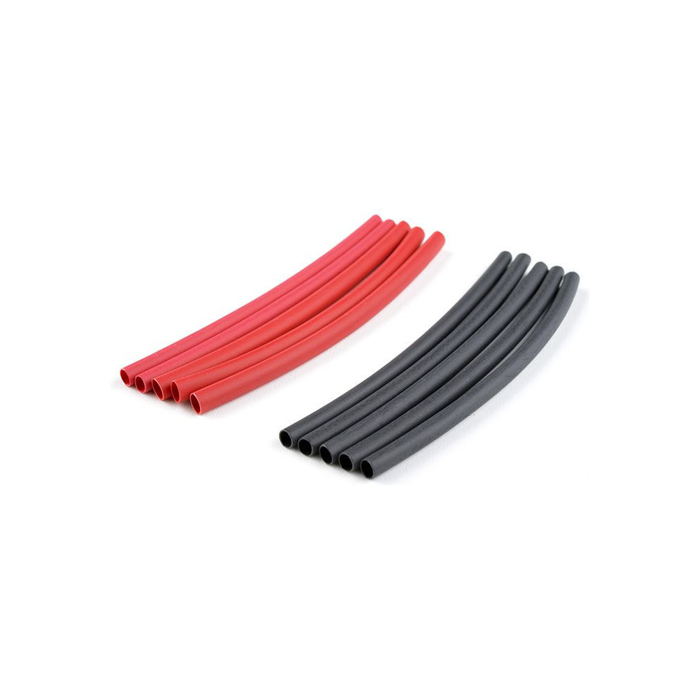 Zsugorfólia kábelekhez és csatlakozókhoz 2,4mm piros + fekete. 50%-os zsugorodásig, 68 mm hosszú, 5 + 5 db csomagonként (piros + fekete).