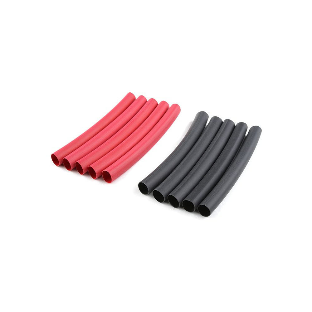 Zsugorfólia kábelekhez és csatlakozókhoz 6,4mm piros + fekete. 50%-os zsugorodásig, 68 mm hosszú, 5 + 5 db csomagonként (piros + fekete).